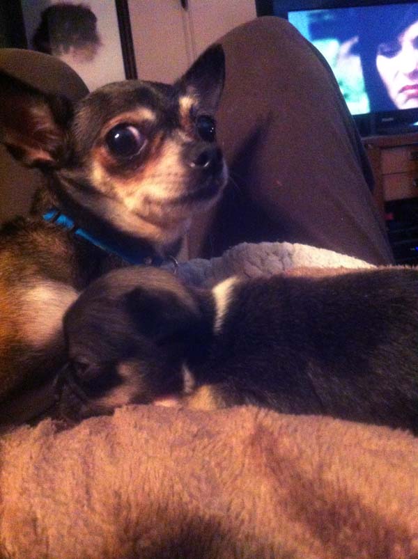 Below are Thelma and Paco in their foster home.