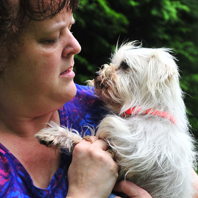 able to see in the other. Pru has the softest coat more silky